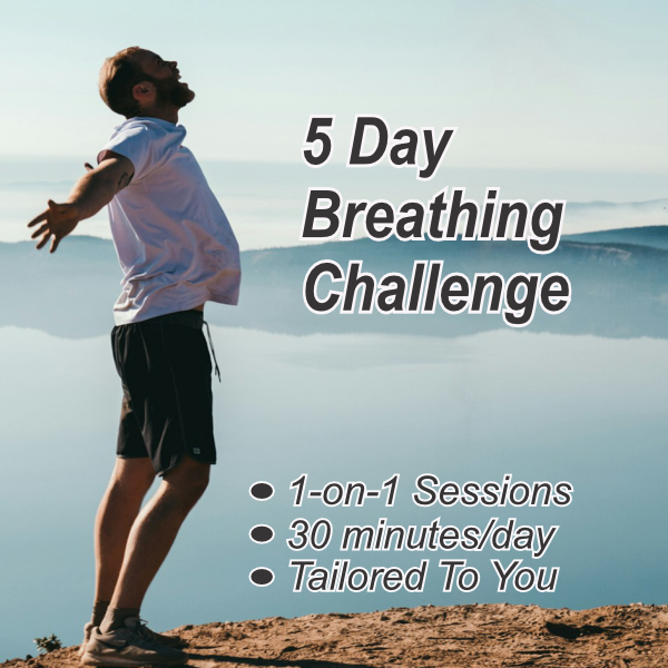 5-Day Breathing Challenge. I am bypassing the gym, weights, equipment and cardio to focus on the safest, zero-impact tool that you possess - Your Breathing. You are already breathing all of the time, so let's take advantage and build on it. Proper breathing can manage pain, restore energy, calm your nervous system, massage your organs and engage your core without stressing your body. (Note: This offering is available at any time so disregard the listing date).