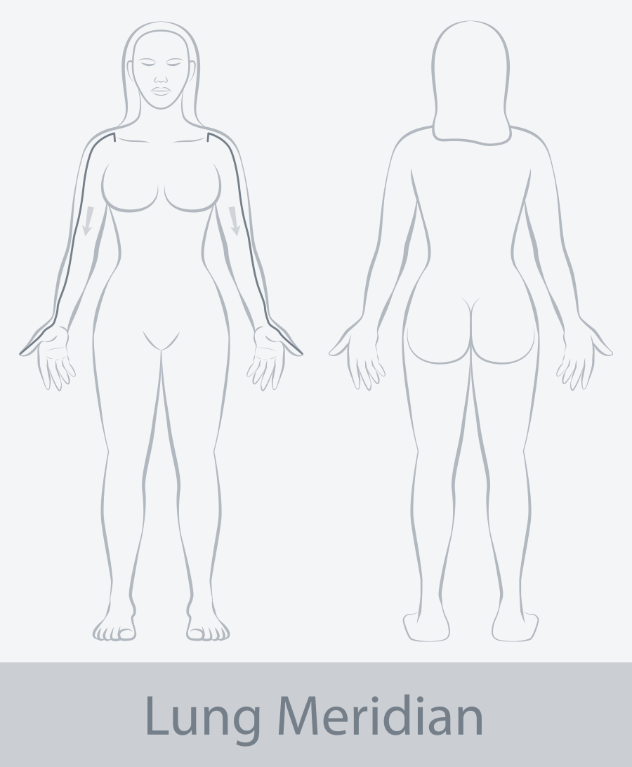 The Lung Meridian is responsible for regulating the flow of qi, the body's vital energy. The Lung Meridian starts from the chest, runs down the inner arm, passes through the lungs, and connects with the throat and nose. This meridian is associated with the lungs, and it plays a crucial role in respiration and the immune system. It is also linked to the emotions of grief and sadness. Imbalances in the Lung Meridian are thought to be related to respiratory issues, allergies, and emotional distress.