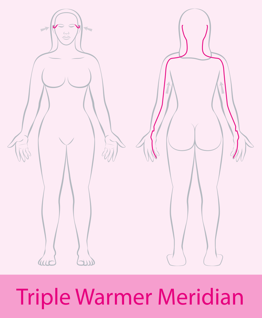 The Triple Warmer Meridian regulates body fluids and heat distribution. Unlike other meridians, it doesn't correspond to a specific organ but governs overall temperature and water metabolism. It starts at the ring finger, travels up the arm, circles the ear, and moves down the side of the body.