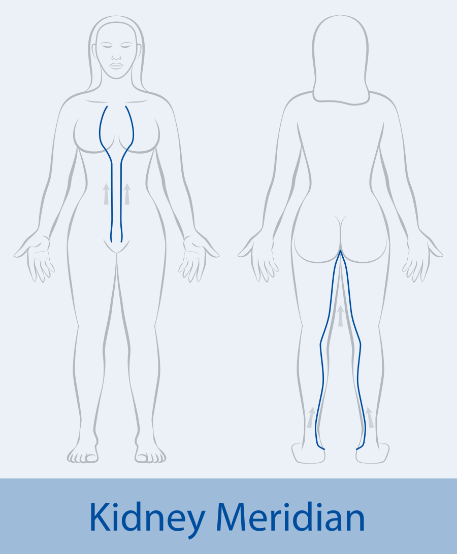 The Kidney Meridian is an energy pathway associated with the kidneys. It starts from the sole of the foot, travels up the inner leg, passes through the kidneys, and runs up to the front of the body. The Kidney Meridian is vital for regulating the body's water balance, maintaining bone health, and supporting reproductive functions. The Kidney Meridian is linked to the emotion of fear. Imbalances in this meridian may lead to issues related to the kidneys, reproductive system, or bones.