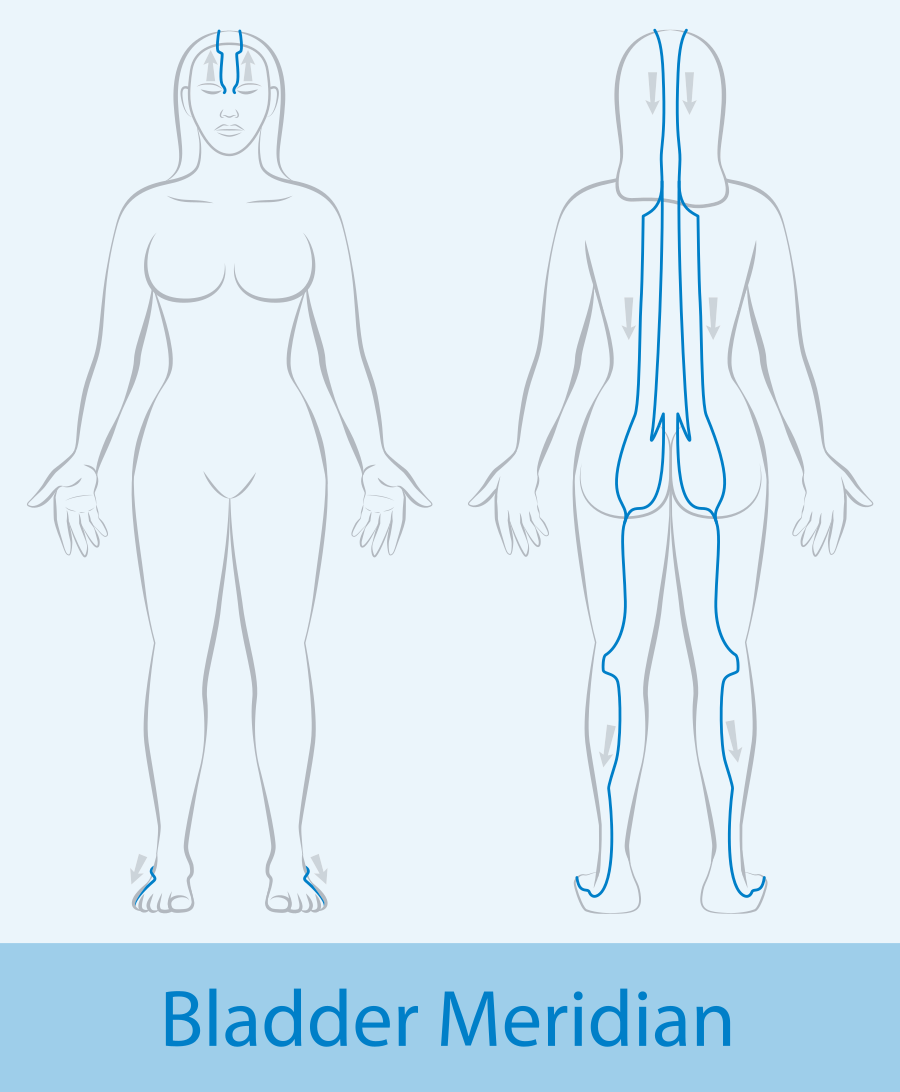The Bladder Meridian is an energy pathway associated with the bladder organ. It runs from the inner eye, travels over the head and down the back, following the spine and legs, and ends at the smallest toe. This meridian is vital for regulating the urinary system and supporting the body's overall energy balance. The Bladder Meridian is associated with the emotion of fear. Imbalances in this meridian can lead to urinary issues and emotional disturbances.